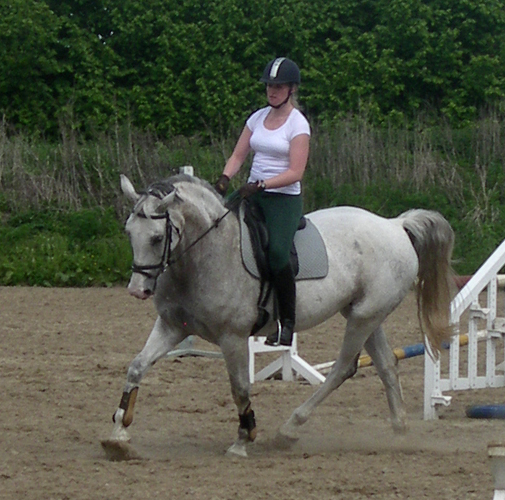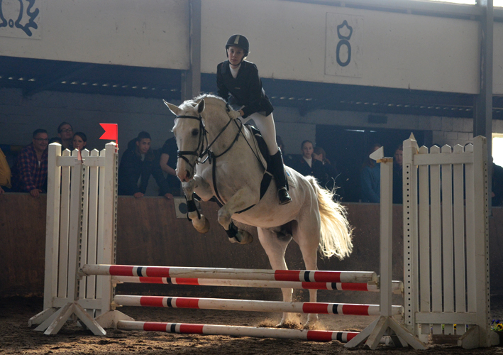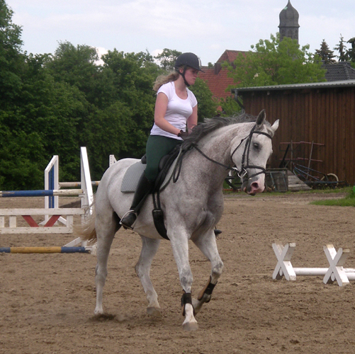 Mittlerweile erfreut sich Giselle auch in den Springstunden großer Beliebtheit. Die Routine ist vielleicht noch ausbaufähig, dafür springt sie schon in sehr schöner Manier auch mal über ein ungewohntes Hindernis.