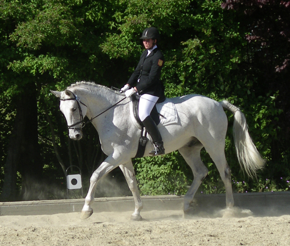 Lotos ist aber auch in der Dressur ein angenehmer Partner, man muss ihn allerdings manchmal zu mehr Fleiß ermuntern.