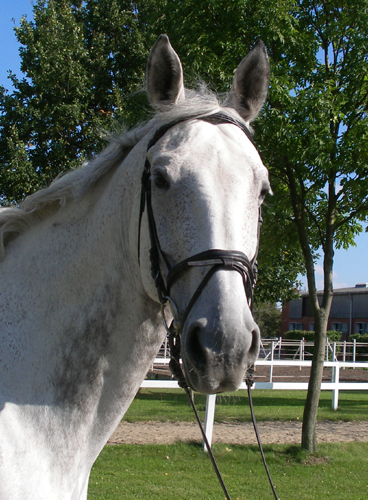 Lotos ist unser sanfter Riese. Seine Holsteiner Abstammung (-er ist ein Enkel vom bekannten Landgraf I) lässt sich nicht nur an seinem Äußeren festmachen, sondern auch an seiner Sicherheit im Parcours. Bis A-Niveau springt Lotos nahezu alles - und zwar mit jedem.