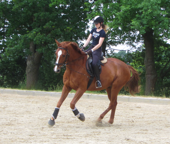Seine innere Ruhe vergisst Nanook schon mal, wenn er in den Parcours kommt. Er hat schon als junges Pferd Erfahrungen in Springprüfungen gesammelt und zeigt nun gerne, was er gelernt hat.