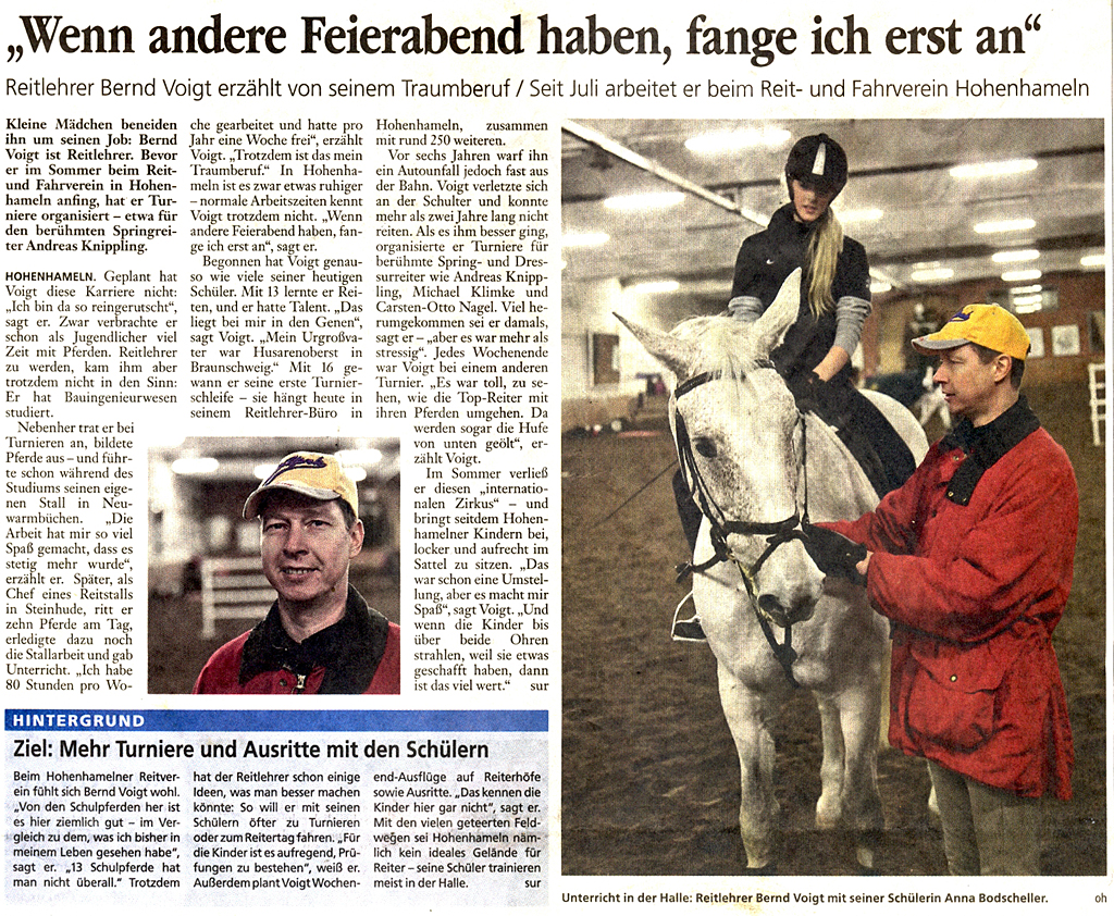 Wer Interesse hat, vielleicht bei den nächsten Vereinsmeisterschaften dabei zu sein, ist herzlich willkommen, Reitunterricht zu nehmen. Informationen gibt es auf der Homepage unter http://www.reitverein-hohenhameln.de/.